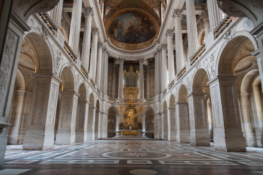 베르사유는 역사에 깊이 빠져 있을 뿐만 아니라 숨막히는 건축과 내부 디자인을 보여줍니다. 유명한 건축가 Louis Le Vau와 Jules Hardouin-Mansart가 디자인한 궁전의 건축적 화려함은 바로크 양식으로 특징지어집니다. 궁전 전체에 대칭적인 배치, 정교한 장식, 그리고 호화로운 금 사용은 타의 추종을 불허하는 고급스러운 분위기를 만듭니다.  거울의 전당(Hall of Mirrors)은 바로크 양식의 대표적인 예입니다. 이 갤러리의 순수한 아름다움과 웅장함에 경외하지 않기란 어렵습니다.