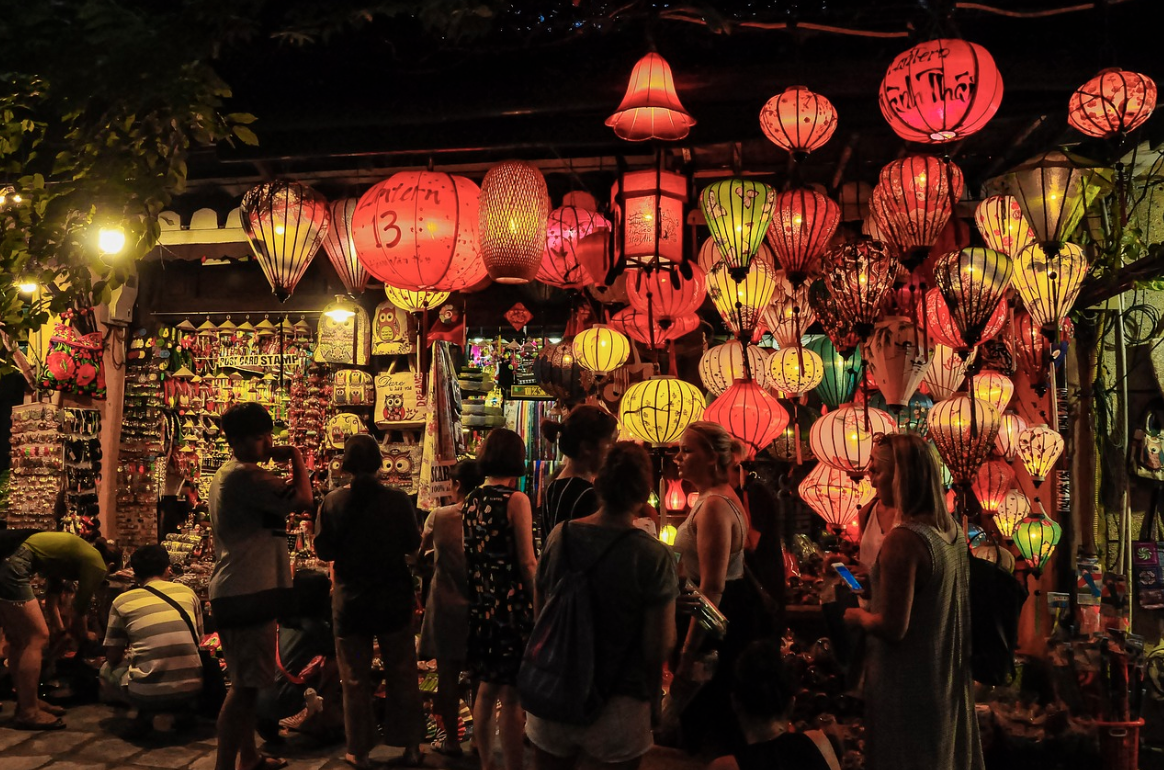 수세기에 걸친 무역과 문화 교류의 묵묵한 증인인 투본강은 밤이 되면 활기 넘치는 식사와 오락 옵션으로 활기를 띱니다. 강변 레스토랑과 바는 편안한 저녁 시간을 보내기에 완벽한 환경을 제공합니다. 현지 별미를 맛보거나 전망을 감상하며 칵테일을 즐기거나 강변 분위기는 호이안의 밤문화에 세련미를 더해줍니다. 강을 따라 보트 크루즈를 즐기며 마을의 빛나는 아름다움을 독특한 시각으로 감상할 수 있습니다. 투본(Thu Bon)을 따라 활공하면서 랜턴 조명이 반사되어 초현실적인 파노라마를 만들어냅니다. 리드미컬한 물 속에서 노 젓는 소리와 강변에서 울려 퍼지는 웃음소리는 호이안의 밤을 정의하는 생동감 넘치는 에너지를 더해줍니다. 호이안의 밤은 고요한 강둑 너머로 확장됩니다. 번화한 중앙시장과 같은 마을의 야시장은 다양한 지역 특산품을 판매하는 상인들로 북적입니다. 수제 공예품과 실크 랜턴부터 맛있는 음식을 판매하는 길거리 음식 노점까지, 야시장은 어두워진 후 호이안을 탐험하는 사람들에게 감각적인 향연을 선사합니다.