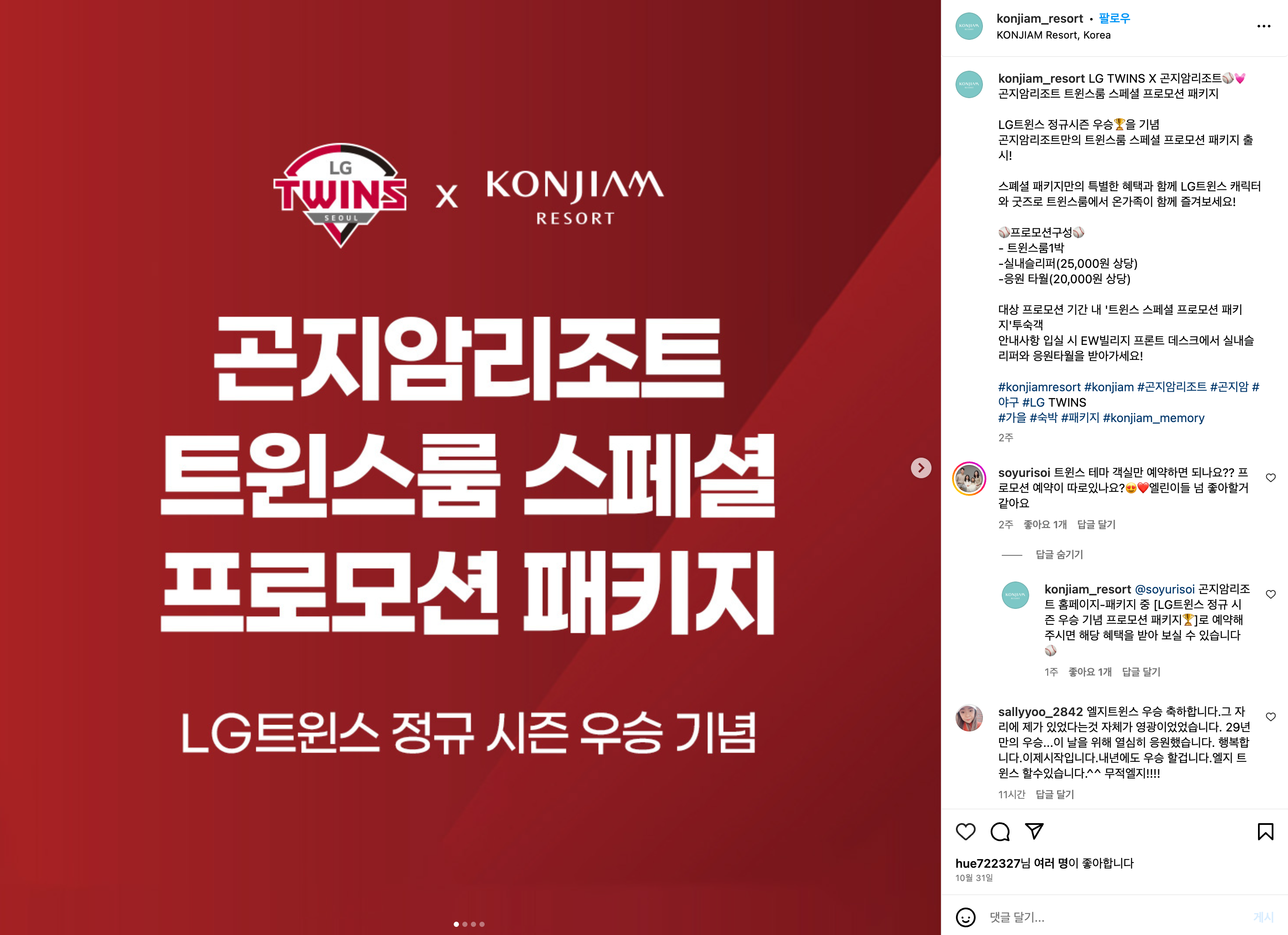특히나 이번 29년! 만의 우승을 맛본 LG그룹이 어떤 이벤트를 선보일지 관심을 기울이지 않을 수 없습니다!